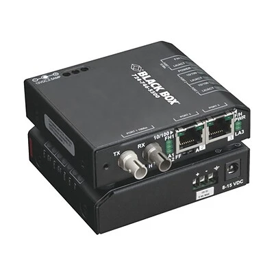 BLACK BOX Hardened Media Converter Switches do more than just adapt from one cable type to another. They’re true Ethernet switches and behave like switches within Ethernet networks – especially those situated in or near harsh industrial areas. This means you can connect them together indefinitely without worrying about inter-repeater links. Each Media Converter Switch features non-blocking switching architecture with a 2K MAC address table. The 128K buffer memory makes it easy to interconnect 10- and 100-Mbps devices.