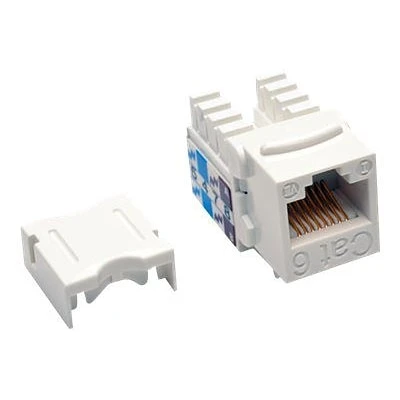 The Tripp Lite N238-025-BL white style punch down keystone jack is suitable for use Cat6 or Cat5e installations. It has RJ45 female connector on first end and 110-type terminal connector on the second end. This jack features a uniquely patterned, printed circuit board designed. It has a compact casing that easily fits into any conventional faceplate, outlet box or panel.