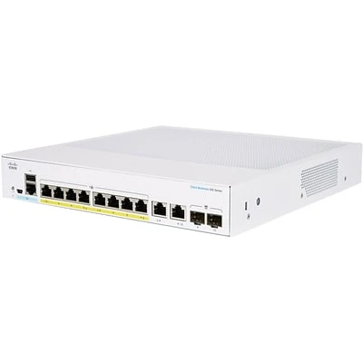 This managed rackmount switch features 8 PoE+ compliant Gigabit Ethernet ports with a 120W budget to operate compatible devices.