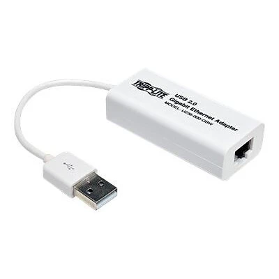 The Tripp Lite U236-000-GBW USB 2.0 hi-speed to Gigabit Ethernet NIC network adapter allows your PC to quickly connect to a Gigabit network. This adapter in white, is compliant with USB 2.0 and USB 1.1 specifications. It supports IEEE 802.3/u network standards. It is compatible with Windows XP, Vista, 7, 8, 8.1, Mac OSX 10.6 through 10.10 and Linux Kernel 2.6.25. The diagnostic LEDs indicate the status of operation.